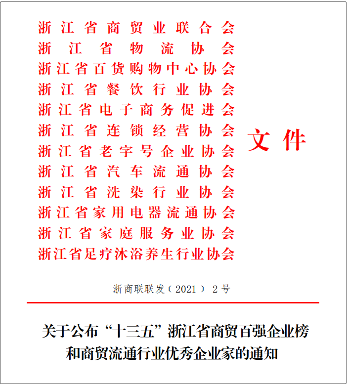 近日,浙江省商貿業聯合會等十二家省級商貿行業商(協)會正式公布“十三五”浙江省商貿百強企業榜和商貿流通行業優秀企業家名單。浙江土畜成功入圍,…